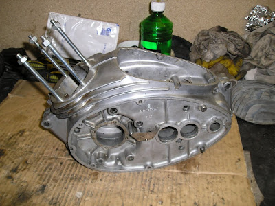 Dále jsem naklepnul nové ložiska do karterů, bohužel ložiska pro klikovou hřídel měli v karteru vůli tak je musím zalepit. Nové gufera na kliku a ke spojkovému klíči.